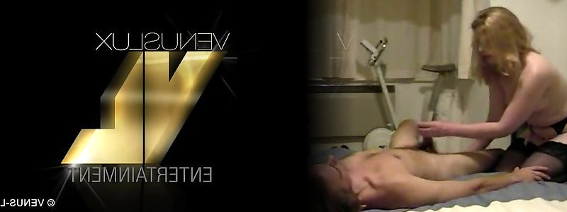 Yummy she-male blondie groping arse and spunk-pump