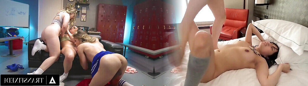 Two Sexy Trannies And One Plum Buxom Gal Go Wild In the Locker Room After the Training