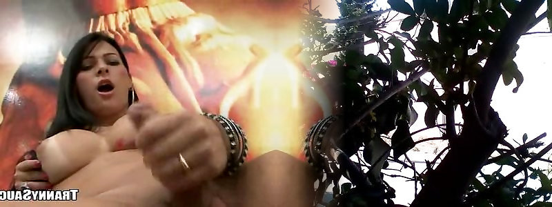 huge-titted brunette hair tgirl Strokes Her gigantic ramrod
