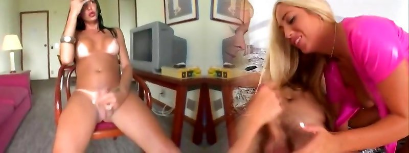 Buxomy Transgirl Honey Strokes Her Immense Prick