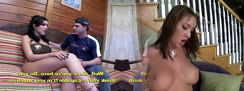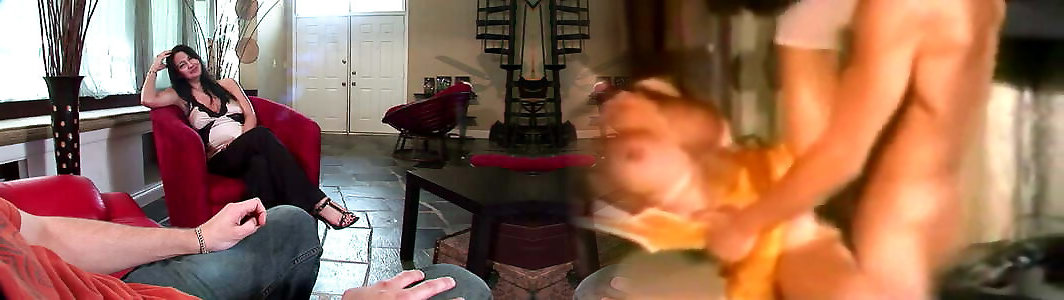 Busty dark haired stunner gets her fuckpole blown by the black boy