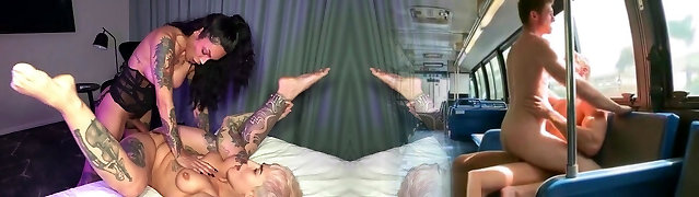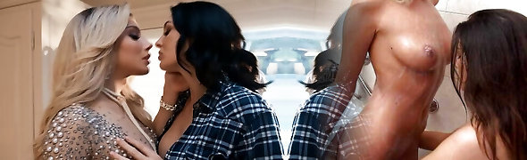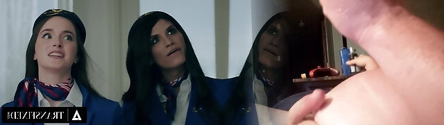 Lovely Huge-boobed Teenie Stewardess Enjoys Gonzo Sex With Her Charming Brunette Shemale Colleague