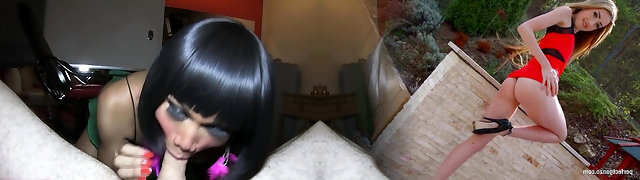 Dark dick sucked on by a fantastic redheaded tranny