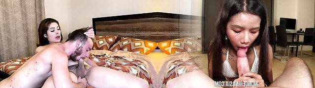 Bitchy thai ladyboy gets butt and mouth group-fucked coarse