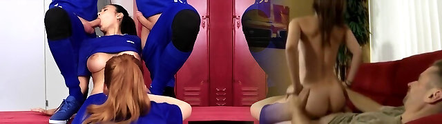 Athletic trans girls staged a real bukkake of an Japanese ladyboy right in the locker room.