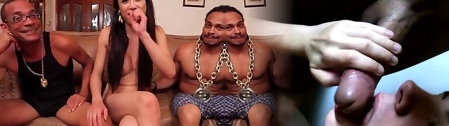 Bigtitted Thai tranny takes humungous cock deep in her hairy backside
