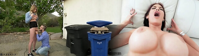 Transsexual milf Casey Kisses gets intimate with nextdoor boy