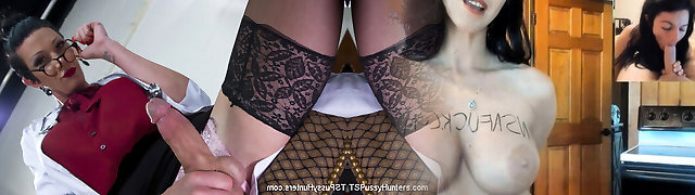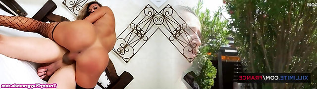 Red-hot as hell tranny in a pair of black stockings gets boinked