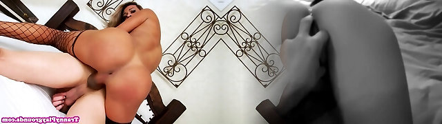 Super-naughty shemale in fishnet stockings gets her butthole worked over
