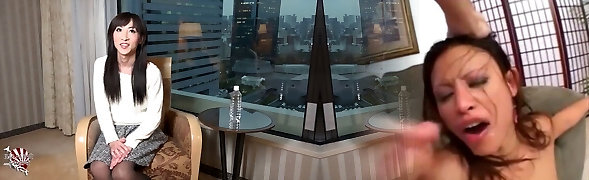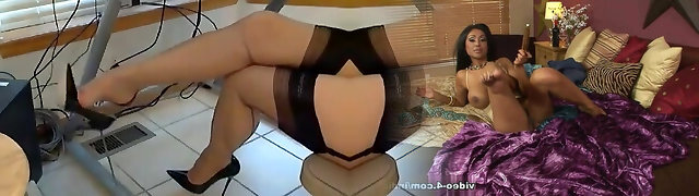 Revved on Asian transsexual in nylon stocking spanking her hot ass