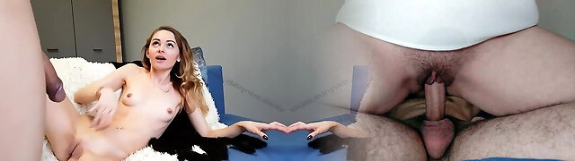 She-male has big boobs and a dick for this smallish brunette girl