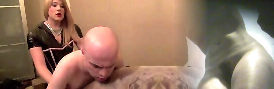 Curvy TS in sexy maid uniform ass penetrated by her master
