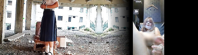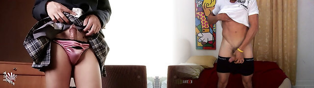 Asian shemale takes her schoolgirl uniform off and demonstrates her jizz-shotgun
