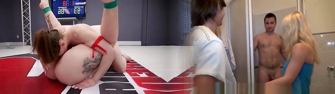 Brown-haired she-creature wrestler plows sandy-haired plus-size