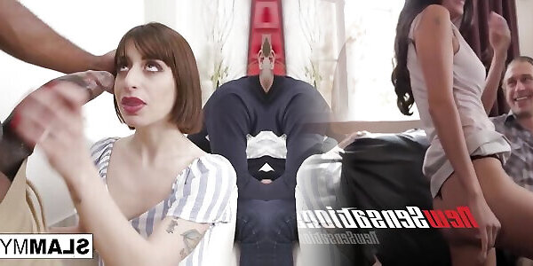 Naughty First-timer Transgirl clamp with Deep Throat, Brunette gigs