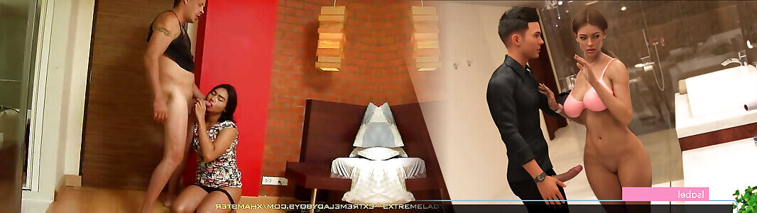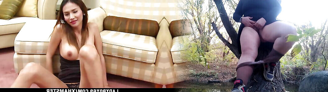 Ladyboy Mos rides a dude&039;s cock in reverse cowgirl