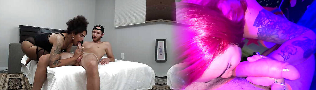 BIG BOOTY Trans bi46c Sucking Huge Cock