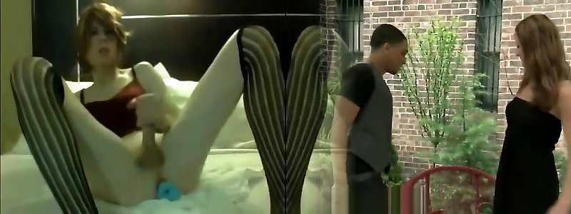 Crimson head Tgirl lady Sarina Valentina plays her fake penis toy in solo