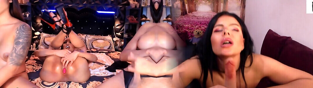 Three hot busty ladyboys jerking and twerking on cam