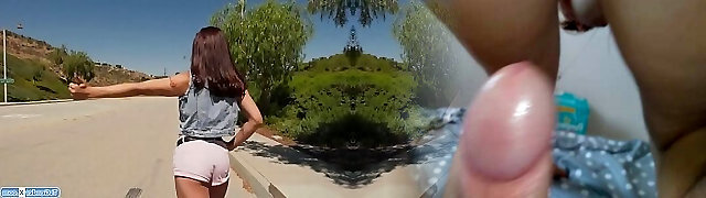 Point Of View Hot Ebony Trans Sucks a Dick In The Forest