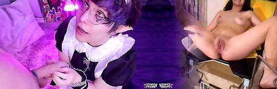Glamorous femboy maid gives a blowjob without happy ending