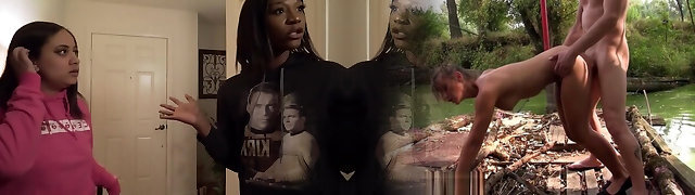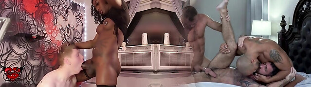 Ebony and Latina shemales fuck guy from Two sides - Real Amateur