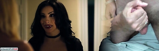 Buxom shemale vampire Ariel Demure invited in to pound her gf