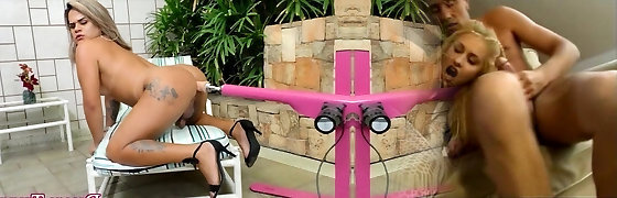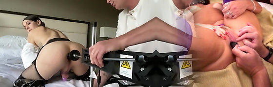 Sexy shemale babes enjoy their bungholes getting fucked by fucking machines