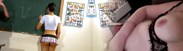 Teacher makes student blow on amateur fuck machine
