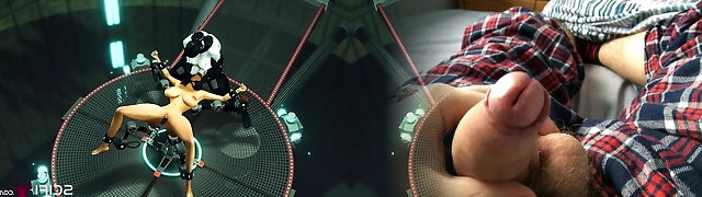 Sci-Fi hump machine. A super sexy brunette gets fucked by humanoid robot shemale