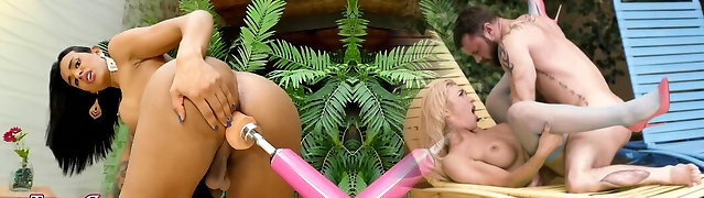 Wild tranny girls enjoy fucking asshole with fucking machine and play with rigid dicks