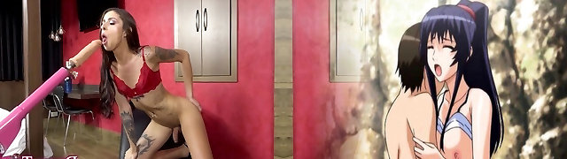TS Ariel Oberlin Vs Meaty Machine Cock