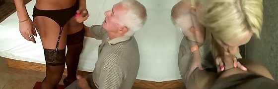 Two hot grannies and she-male