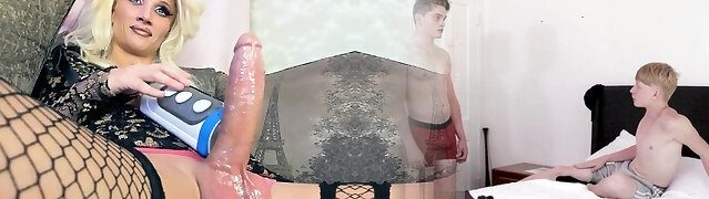 Sexy mature tranny Casey Kisses is fucking pretty young blonde