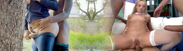 Compilation: Sauna three-ways with naughty Tgirls and lusty chicks.