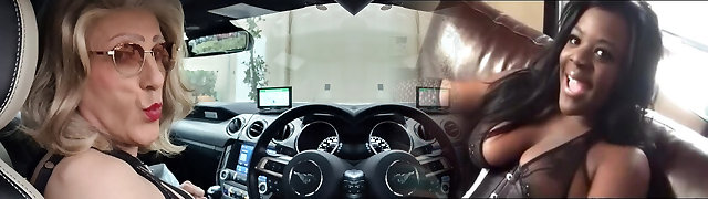 Slim Small-titted Tranny In a Short Skirt Satiates Herself With Wanking Right In the Car